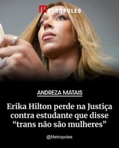 Ler NotíciaERIKA HILTON PERDE NA JUSTIÇA CONTRA ESTUDANTE QUE DISSE QUE TRANS NÃO SÃO MULHERES
