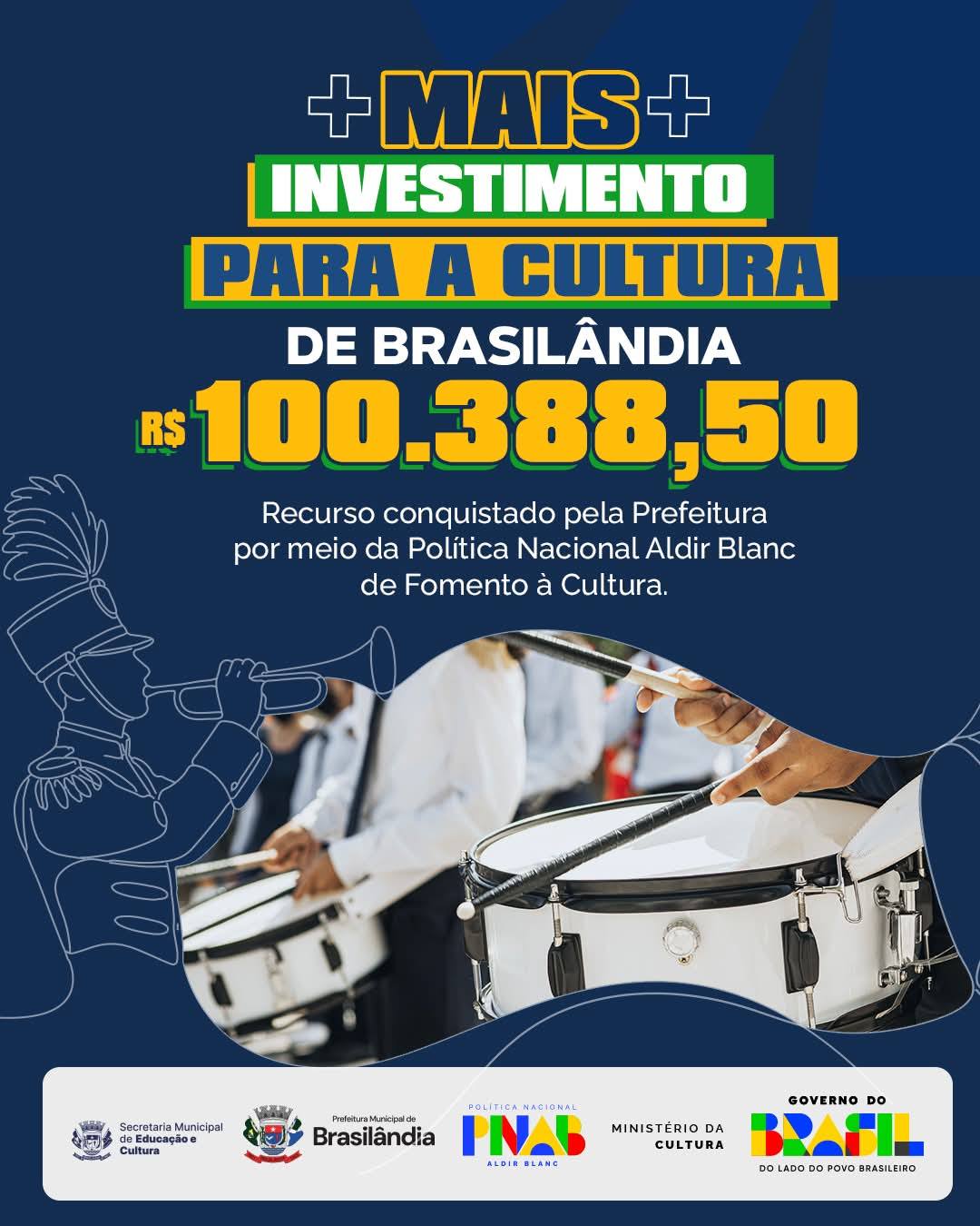A Prefeitura conquistou R$ 100.388,50 por meio da Política Nacional Aldir Blanc para fortalecer a cultura no município. O recurso será destinado a: Shows e eventos culturais Oficinas culturais Projetos culturais em geral Cultura indígena e de matriz africana Tudo definido com a participação da comunidade cultural em audiências públicas. Em breve serão publicados editais para que artistas e agentes culturais apresentem seus projetos e concorram ao financiamento. A gestão municipal segue trabalhando para garantir mais oportunidades, valorizar os talentos da cidade e fortalecer a cultura de Brasilândia.