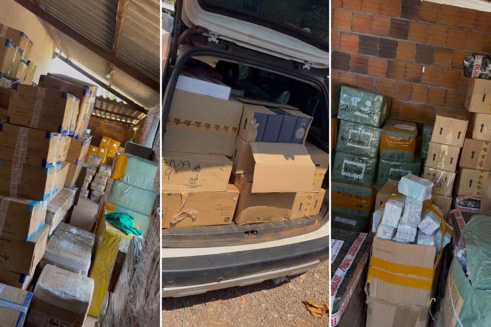 No local, os policiais encontraram outros seis veículos preparados para o transporte ilícito e um galpão repleto de caixas com produtos como cigarros, cigarros eletrônicos, celulares, relógios, perfumes, óculos, iPads e notebooks.