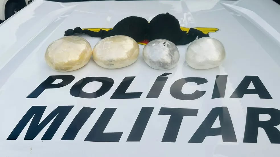 Durante a vistoria, duas passageiras demonstraram nervosismo e, quando questionadas, confessaram que cada uma trazia, escondidos em seus sutiãs, dois invólucros de cocaína.