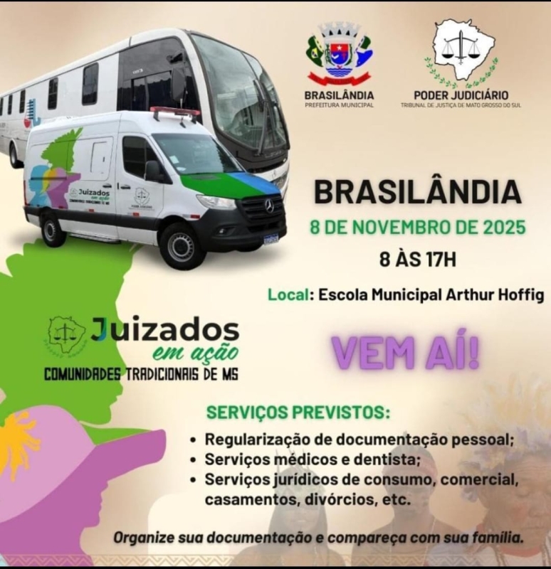 No dia 8 de novembro, a Escola Municipal Arthur Hoffig se transformará em um grande palco de cidadania. Das 8h às 17h, Brasilândia recebe o mutirão “Juizados em Ação”, uma iniciativa do Tribunal de Justiça de Mato Grosso do Sul (TJMS) que promete regularizar a vida documental de centenas de famílias, com ênfase especial na conversão de uniões estáveis em casamento – um sonho que para muitos parece distante, mas que estará ao alcance de forma gratuita e acessível.