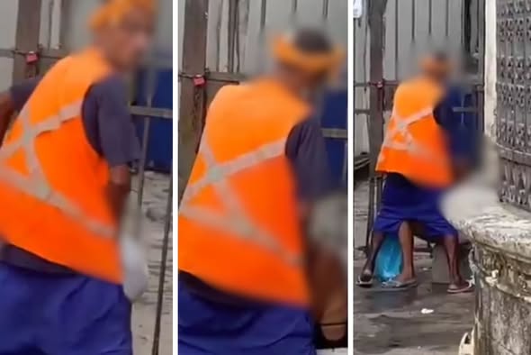 Na gravação, é possível observar a mulher sentada enquanto um homem, em pé, era alvo da conduta. O registro foi feito por um pedestre que se manifestou com indignação: