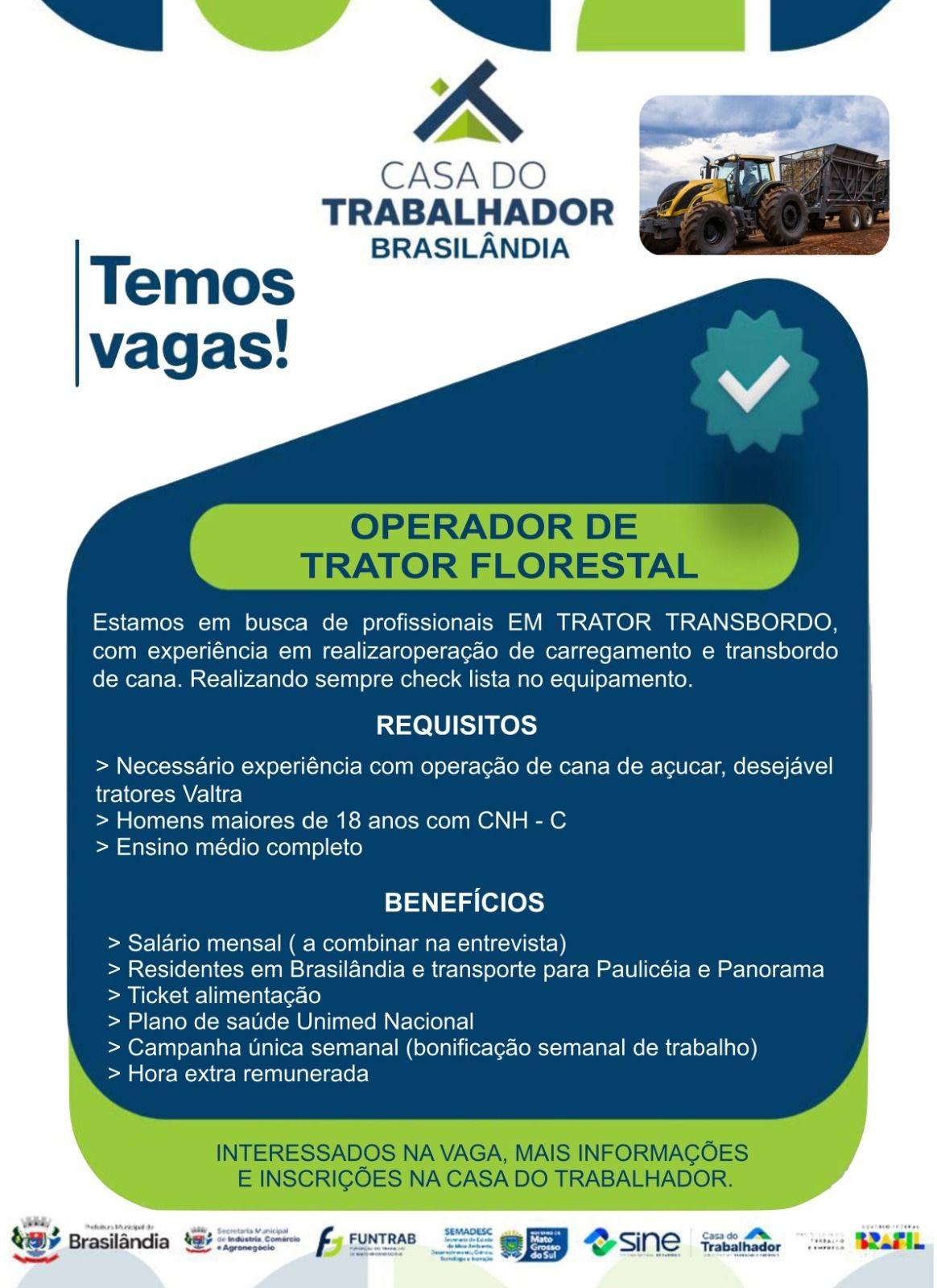 Essas vagas podem ser da cidade de Brasilândia, Panorama e Paulicéia. Interessados entrar em contato com a casa do trabalhador. Whatsapp (67)92000-6171
