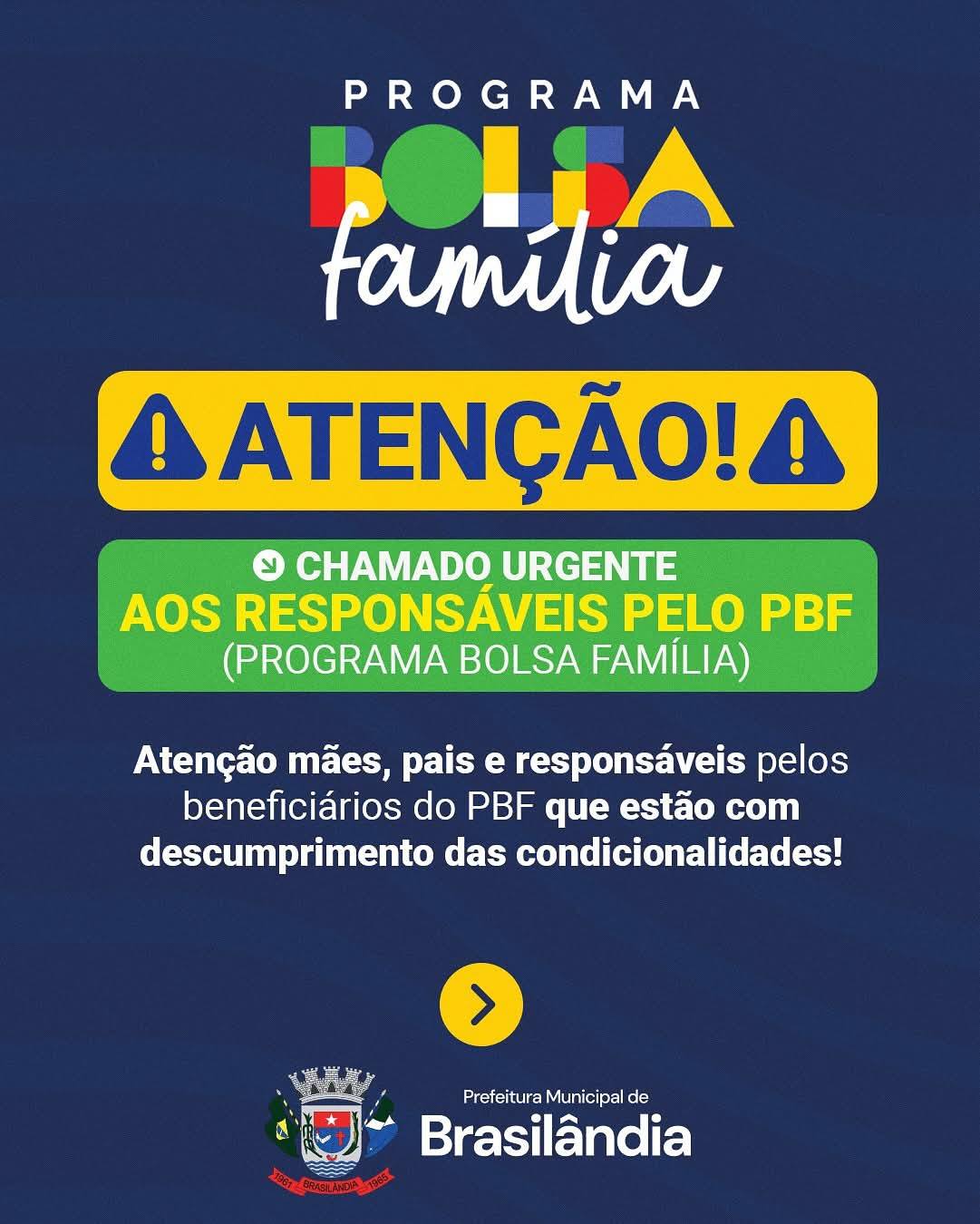 A Secretaria Municipal de Assistência Social de Brasilândia emite um alerta urgente aos responsáveis por beneficiários do Programa Bolsa Família (PBF) que estão com condicionalidades em descumprimento. O benefício pode ser suspenso se a regularização não for feita imediatamente. O que fazer?⏳ Prazo máximo: 10 dias a partir desta publicação.📍 Onde regularizar: 📋 Documentos necessários: Por que é urgente?O descumprimento das condicionalidades (como frequência escolar e acompanhamento de saúde) gera:❌ Advertências❌ Suspensão temporária do benefício❌ Bloqueio ou cancelamento em casos reincidentes Fala da SecretariaA secretária municipal de Assistência Social, Emília Vichete, reforça:“O Bolsa Família é um direito importante para muitas famílias, mas exige compromisso com as regras. Quem está…