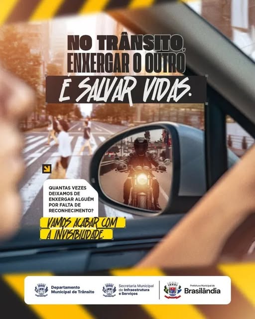 Você realmente vê quem está ao seu lado no trânsito? O Departamento Municipal de Trânsito de Brasilândia já tem definido o tema da Campanha para este ano: “No trânsito, enxergar o outro é salvar vidas.” Muitas vezes, na correria do dia a dia, a “invisibilidade” toma conta das nossas ruas. Motociclistas, pedestres e ciclistas passam despercebidos não por falta de visão, mas por falta de reconhecimento. Vamos acabar com a invisibilidade! O diretor de trânsito, Júlio César Marques Mariano, reforça o convite: pratique a empatia. Olhe no retrovisor, dê a…