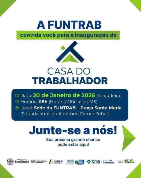 Atenção, Brasilândia! Sua busca por emprego e qualificação acaba de ganhar um novo endereço. No dia 20 de janeiro, a partir das 08h, vamos inaugurar a Casa do Trabalhador na Praça Santa Maria (Espaço Ramez Tebet). Um espaço público, gratuito e pensado para fazer o seu futuro acontecer. O que você vai encontrar lá? Vagas de emprego e intermediação de mão de obra; Cursos de qualificação profissional; Solicitação de Seguro-desemprego; Orientações para o trabalhador.