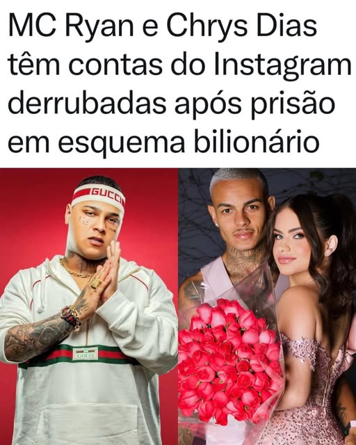 O artista MC Ryan e o influenciador Chrys Dias, presos na quarta-feira (15) em operação da Polícia Federal que investiga esquema de lavagem de dinheiro de R$ 1,6 bilhão envolvendo bets ilegais, tiveram as contas do Instagram retiradas do ar. Apontado como o artista mais ouvido do Brasil no Spotify, o funkeiro reunia mais de 15 milhões de seguidores na rede social. Chrys Dias somava mais de 14 milhões. Ambos eram conhecidos pelo estilo ostentação e pela exibição de uma vida de luxo, especialmente com carros esportivos. Chrys Dias também…