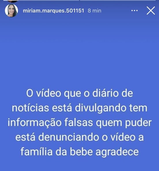 Ler NotíciaFAMILIARES DA BEBÊ QUE FALECEU DE MENINGITE, FAZ CAMPANHA NAS REDES SOCIAIS PEDINDO PARA AS PESSOAS DENUNCIAR O VÍDEO