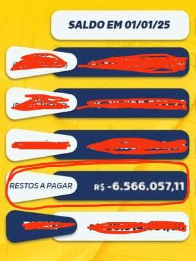 O descontrole com as contas publicadas está assustadoramente aumentando a cada dia, sem construir um único obstáculo, a administração já empenhou de notas em 2025 R$ 50.321.851,27 ( cinquenta milhões trezentos e vinte e um mil oitocentos e cinquenta e um reais e vinte e sete centavos), e pagou R$ 36.941.700,29 (trinta e seis milhões novecentos e quarenta e um mil setecentos reais e vinte e nove centavos) até a data de hoje 15-07-2025. Foi divulgado em janeiro de 2025, que administrações passadas deixaram de restos a pagar de fornecedores…