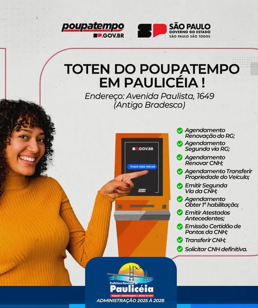 Ler NotíciaTOTEN DO POUPATEMPO EM PAULICÉIA