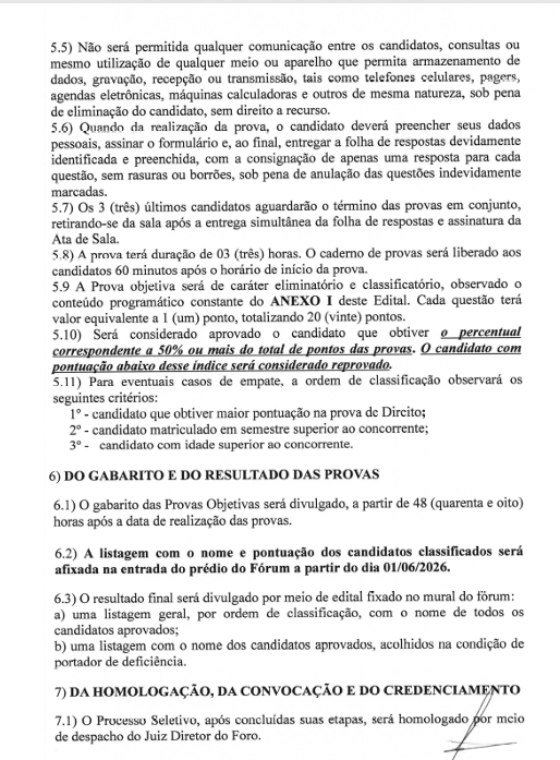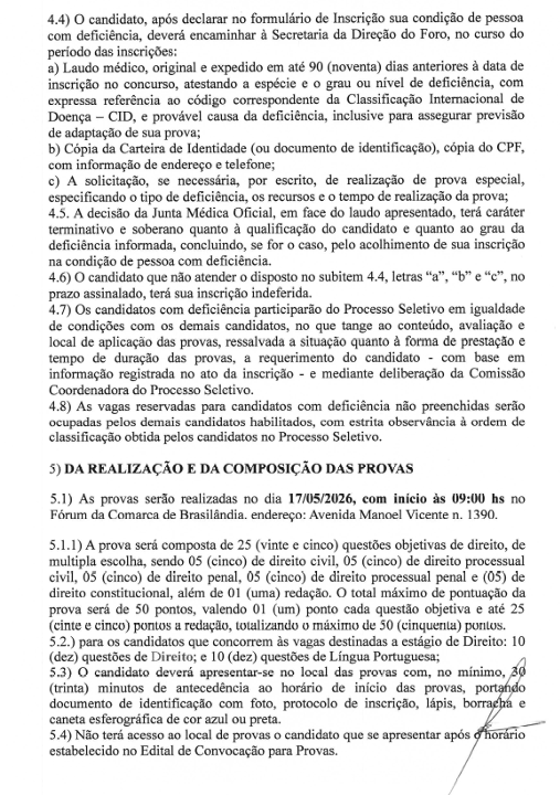 Podem participar acadêmicos regularmente matriculados em instituições públicas ou privadas de Mato Grosso do Sul, que estejam cursando do primeiro ao 10º semestre. As provas serão realizadas no dia 17-05-2026, com início ás 9:00h no Fórum da Comarca de Brasilândia, endereço Avenida Manoel Vicente n 1390