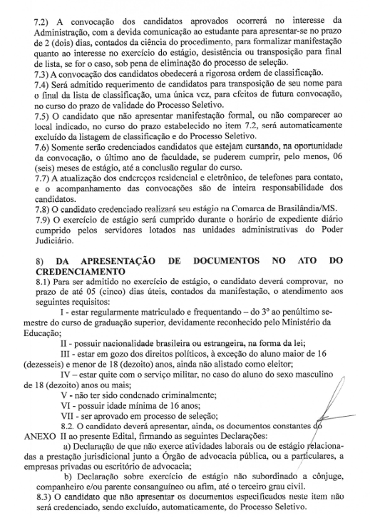 A comarca de Brasilândia está com inscrições abertas para o processo seletivo destinado à formação de cadastro de reserva para estagiários de Direito. As inscrições são gratuitas e devem ser realizadas na secretaria do fórum das 12:00 ás 19:00h entre os dias 02-03-2026 e 31-03-2026