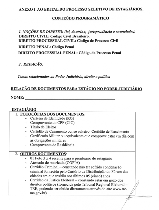 COMARCA DE BRASILÂNDIA MS, ABRE PROCESSO SELETIVO PARA ESTAGIÁRIOS DE DIREITO