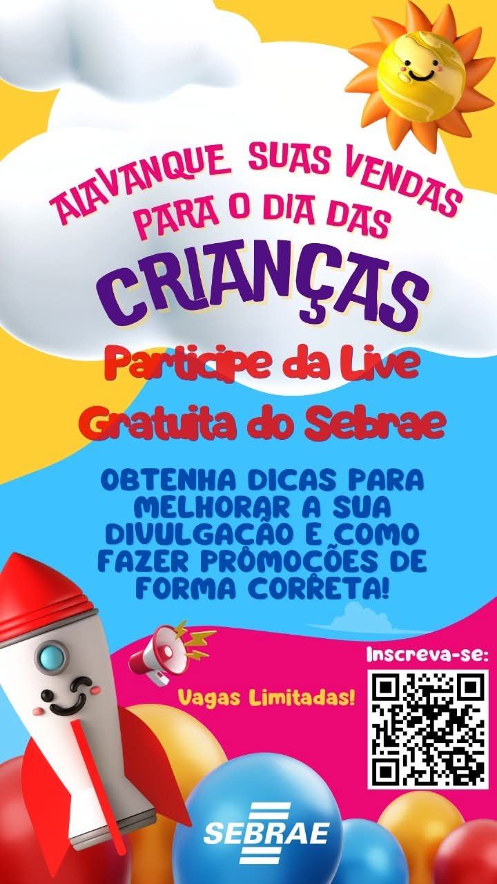 Para te ajudar a aproveitar ao máximo esse momento, o Sebrae preparou uma Live Gratuita e imperdível, cheia de estratégias práticas para o seu negócio decolar! ![]()