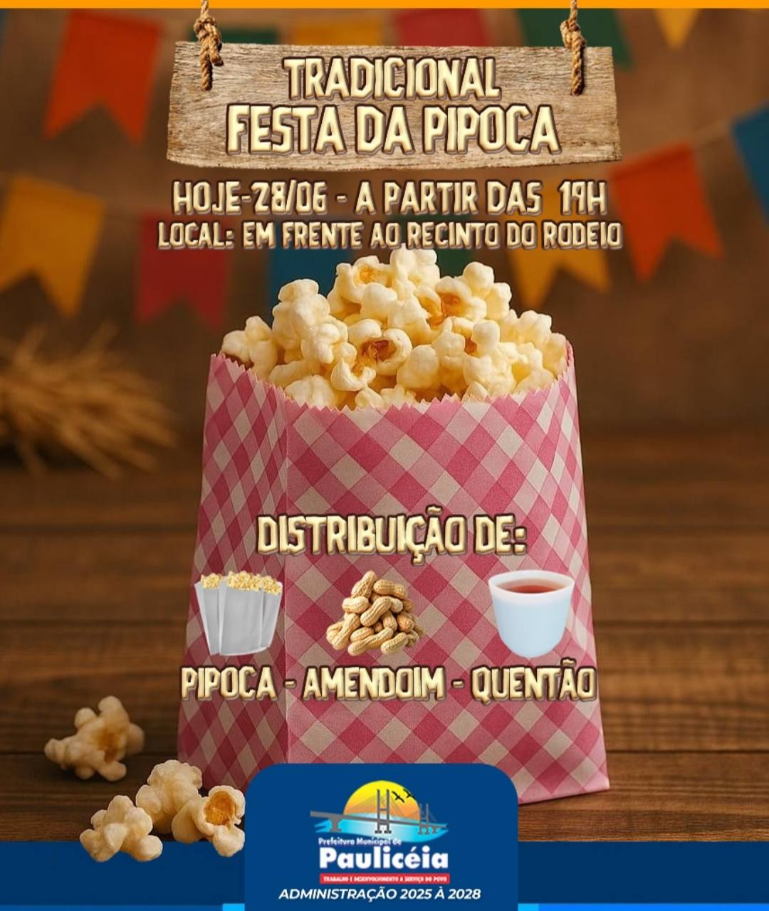 FESTA DA PIPOCA HOJE EM PAULICÉIA SP 28 de junho de 202529 de junho de 2025 Diário Notícias Às 19h em frente ao recinto de rodeio. A partir das 21h inicia o rodeio. Entrada do rodeio 1kg de alimento não perecível