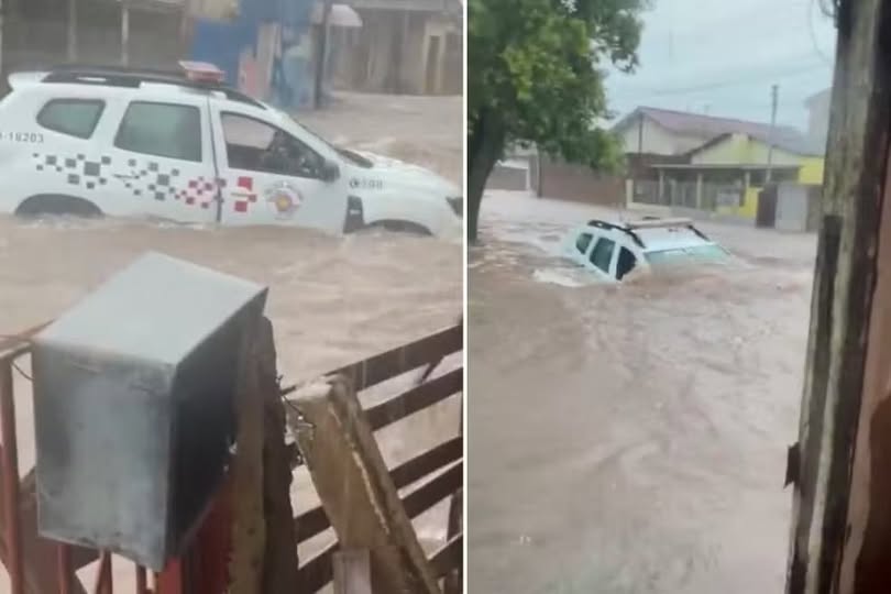 Uma forte chuva atingiu a região oeste paulista e causou pontos de alagamento nesta terça-feira (24). Em Martinópolis (SP), um vídeo gravado por moradores mostra a força da água, que arrastou uma viatura da Polícia Militar. Um idoso de 66 anos desapareceu devido à enxurrada.