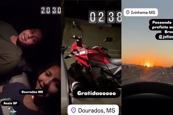 O casal saiu de Assis (SP) na última quarta-feira (22) para pegar uma moto comprada em Dourados (MS). Nas redes sociais eles compartilharam informações da viagem e comemoraram a aquisição do veículo. O vídeo foi postado por volta das 20h30 daquele dia (veja imagens acima).