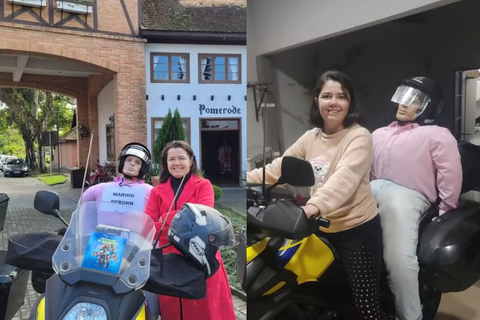 A acadêmica de terapia ocupacional Isabella Jonsson, de 30 anos, levou uma companhia inusitada durante uma viagem de moto: o “marido reborn”, como ela mesma descreve. Com tecidos, cabeça e até capacete, ela criou um boneco que percorreu mais de 2 mil quilômetros de Mundo Novo (MS) até Pomerode (SC) na garupa de uma motocicleta.