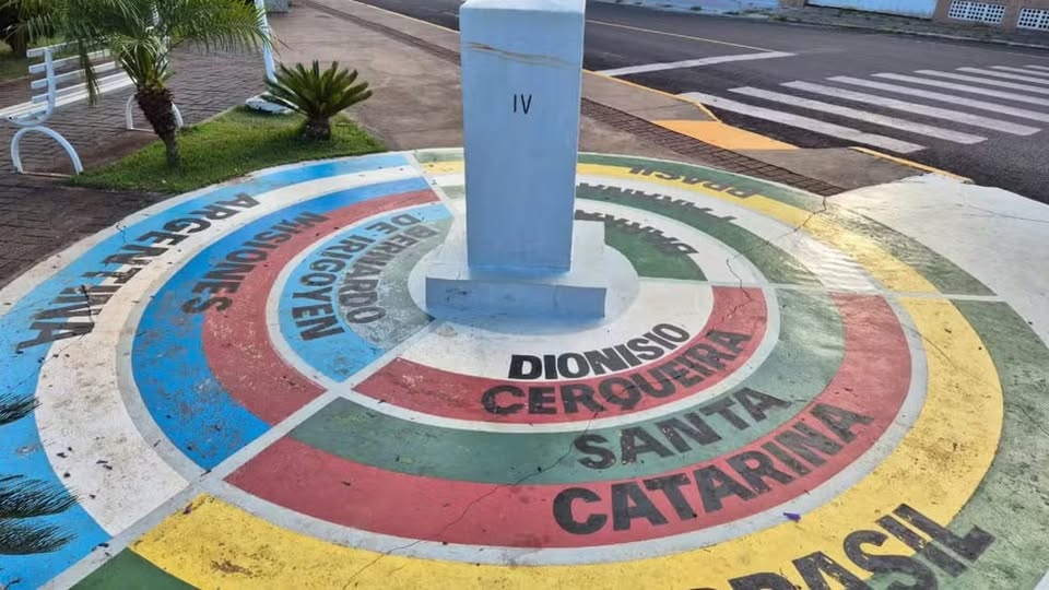 Um dos pontos mais simbólicos da região é o Marco das Três Fronteiras. A poucos metros da rua, o monumento marca o encontro dos territórios.